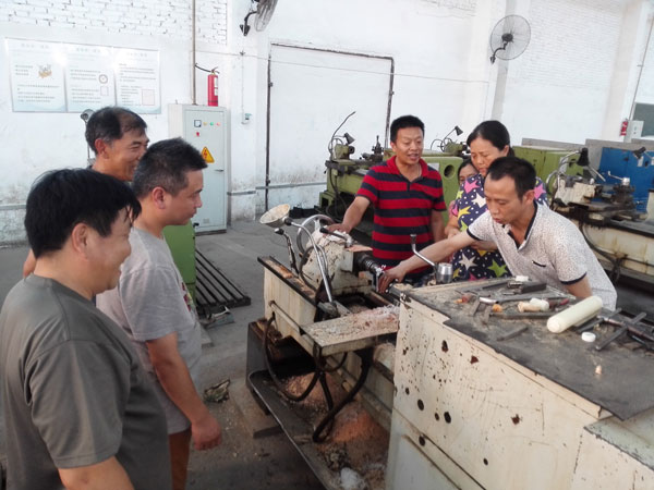 天气炎热,实习车间里更是闷热,但老师们的学习热情没有受到影响。对自身职业素质提高的迫切感,对学院发展的责任感,使他们学习情绪高涨。为体现现代机械加工技术的实用性,也为了增加培训学习的趣味性,老师们根据自己的兴趣,独立编程,独立操作,做出了各种木制品,有手串、平安扣、家具组件。每个工件都构思巧妙又极具实用价值。实训结束时,大家纷纷说:这样的学习,我们还想要更多。