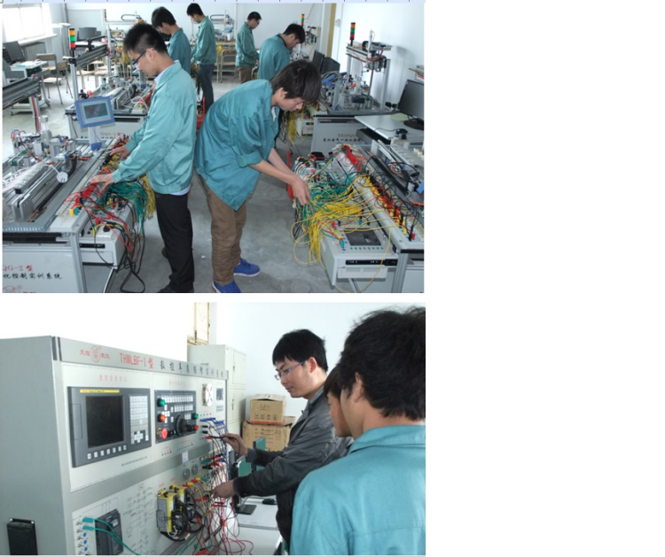 电子技术应用实训室建设 电子技术应用现有实验实训设备总值达150余万元,建设了电子技术实训室、单片机实训室、印制电路板实训室、家电维修实训室、PLC应用实训室等10个一体化教室;为学生的专业学习奠定了坚实基础。 印制电路板实训室 电子实训室 单片机实训室 PLC应用实训室单片机实训室