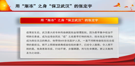 团课中,我们学习了以“渐冻”之身“保卫武汉”的张定宇的先进事迹,学习他冲锋在前、身先士卒的奉献精神;学习了洛阳嵩县向前线捐赠十万斤大葱这一淳朴的行为;认识了那些在疫情面前,依然冲在一线的医护人员,为抗击疫情,他们舍弃了自己的家人,连夜奔赴武汉。团课的最后,同学们围绕“我们身边的当代雷锋”展开了讨论,他们一致认为第一名就是奋战在一线的抗疫战士们,他们每日奋战在抗疫第一线,离开了自己的家庭,牺牲了自己的时间,用自己的心血和精力,同死神赛跑,在生死线上奔跑,救回了一个又一个病人,同学们向奋战一线的抗疫战士们,致以了最崇高的敬意。