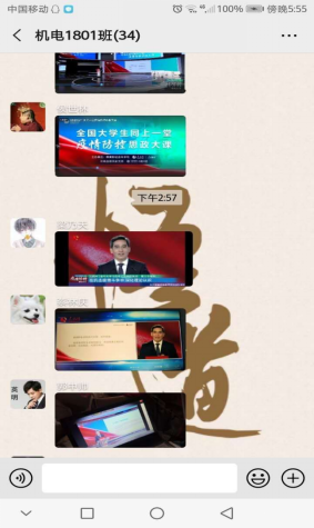 3月9日,洛阳职业技术学院机电工程学院积极响应教育部社科司与人民网的号召,在微信群内组织全体学生开展“疫情防控思政大课”,各班团支部组织学生在班级群内积极发表自己的看法和感想。