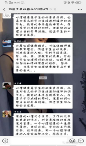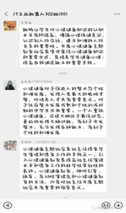 通过开展心理健康教育主题班会,让同学们在班级群里充分讨论,发表自己的看法,对自己的行为做出评价和选择,解决在学习和生活中出现的问题,从而更好地适应新环境,不断增进身心健康,使人生有丰富的发展,迈向新的人生境界。