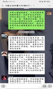 由于疫情的影响,部分学生存在焦虑、不安等情绪,这个时候让学生观看心理健康宣传视频不仅可以帮助学生度过这个特殊的假期,而且还能驱散学生成长中的各种迷雾,指导其健康地成长,从而平稳的度过心理迷茫期,使学生具备良好的心理品质并终身受益。