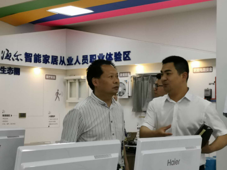 下午4点,韩洪涛副院长一行参观了海尔COSMOPlat智能学院、产教融合实训基地,了解项目投资、基地运作管理和实际使用等情况。