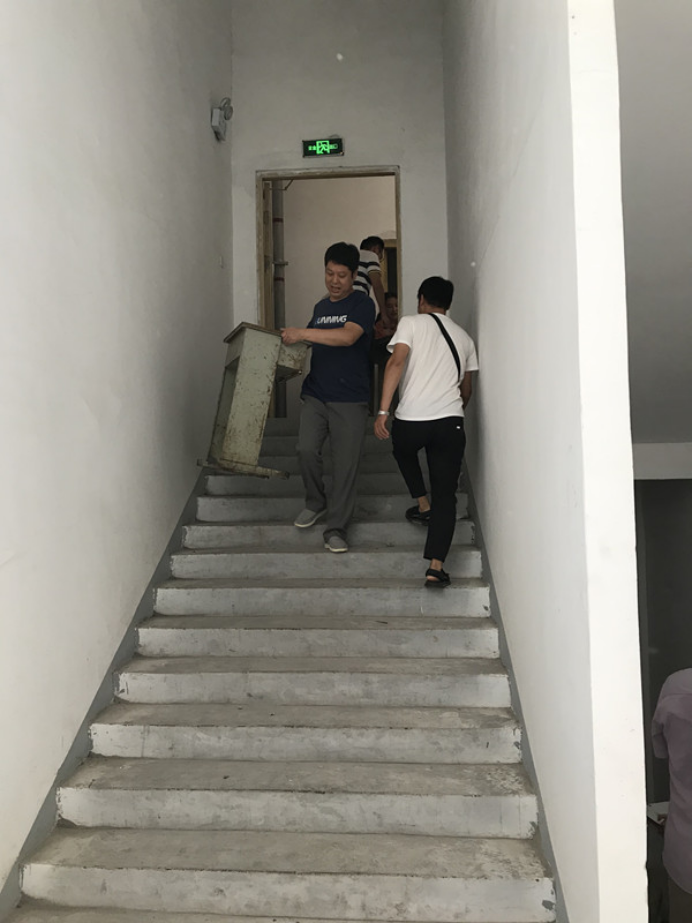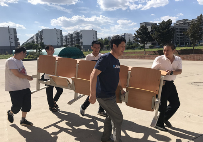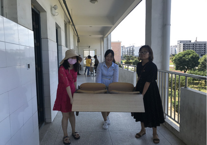 大家按照分工,把废旧桌椅按照好坏进行了分类,好的搬到教学楼二楼教室,坏的搬到综合楼负一楼仓库。劳动中大家争先恐后,汗水湿透了衣衫,灰尘粘满了脸颊。经过一个多小时的搬运,原来杂乱无章的综合楼一楼大厅已经变得干净整洁,面貌焕然一新。