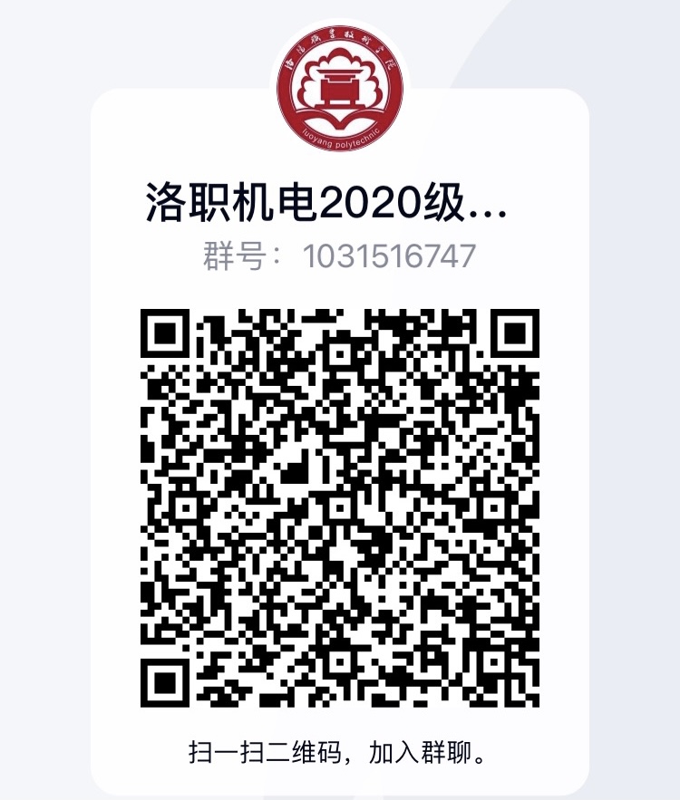 请于2020年10月9日前实名加入“洛职机电2020级新生群”,群号1031516747,以便后续办理报道等相关手续。