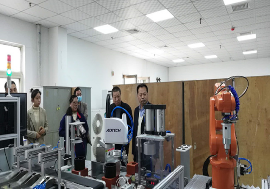 韩洪涛来到机电学院工业机器人实训教室,对机电学院新进的工业机器人集成应用平台进行了仔细的询问,了解到本套设备对于提高学生技能,参加国赛、省赛具有重大意义。韩洪涛指出,学院支持工科专业的发展,在设备投入方面尽最大可能提供便利,支持学科专业群的建设和发展。