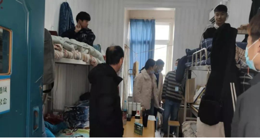 检查过程中,领导和老师们仔细检查了宿舍卫生和安全工作,详细了解各寝室返校情况,认真询问了同学们的假期生活与新学期课程学习安排情况。郭书记强调,各寝室要养成良好的生活及卫生习惯,寝室成员要友爱互助,重视安全卫生,树立优良寝风,要尽快投入学习,适应新学期生活。