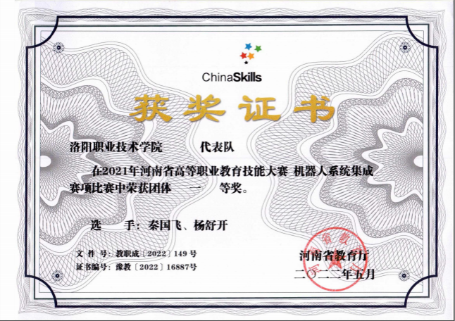 围绕洛阳市装备制造产业智能化发展的需求,助力洛阳中原城市群副中心城市建设,结合洛阳市现代产业体系建设要求,我院于2016年开设了工业机器人技术专业,2021年获批洛阳市职业院校高水平专业群智能制造专业群。