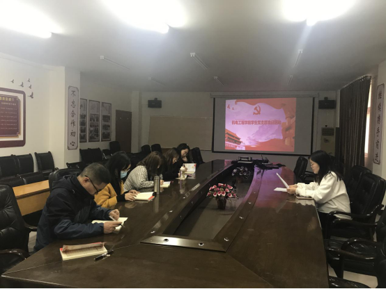 3月29日,机电工程学院学生党支部在高新校区综合楼三楼会议室开展党日活动,会议由学生党支部书记段檀烁主持。