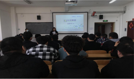 洛阳北方企业有限公司人事主管逯老师通过PPT向学生们详细介绍了公司现状、企业员工培养模式以及公司目前的发展状况。