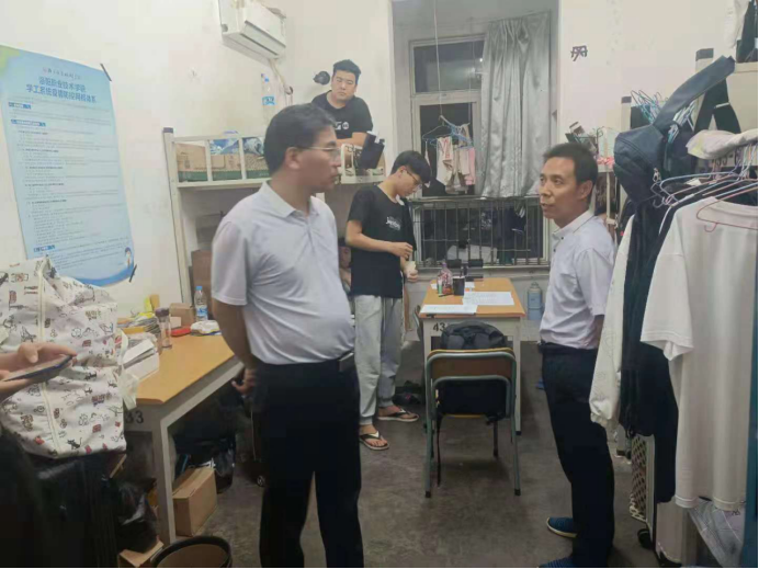 7月3日晚上9点半,副院长张志友、学生处处长李少沛一行在高新校区开展安全检查。机电工程学院、汽车与轨道交通学院相关负责人及部分辅导员陪同检查。