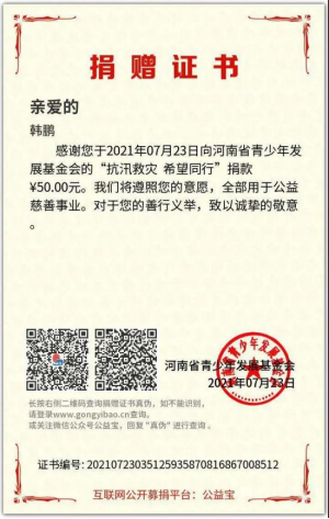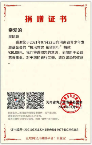 7月20日以来,河南多地遭受暴雨袭击,出现极端降水天气,防汛形势严峻。危机时刻,机电工程学院学子积极为受灾地区捐款捐物,参与捐助109人,共募集1708.63元。部分同学参加当地抗洪、志愿服务,他们在防汛救灾一线,展现青春担当,用自己的力量筑起保卫家乡的堤坝。