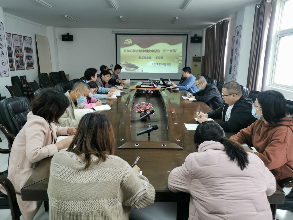 10月9日下午,机电工程学院教工党支部在高新校区综合楼三楼会议室开展支部书记讲党课活动,党课由支部书记王俊卿同志主讲,题目为——在学习党史新中国史中坚定“四个自信”。支部全体成员参加。