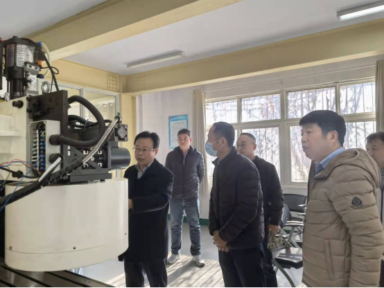 在听取完汇报后,朱美荣深入到教学一线,实地参观了谭志强数控设备维修技能大师工作室。