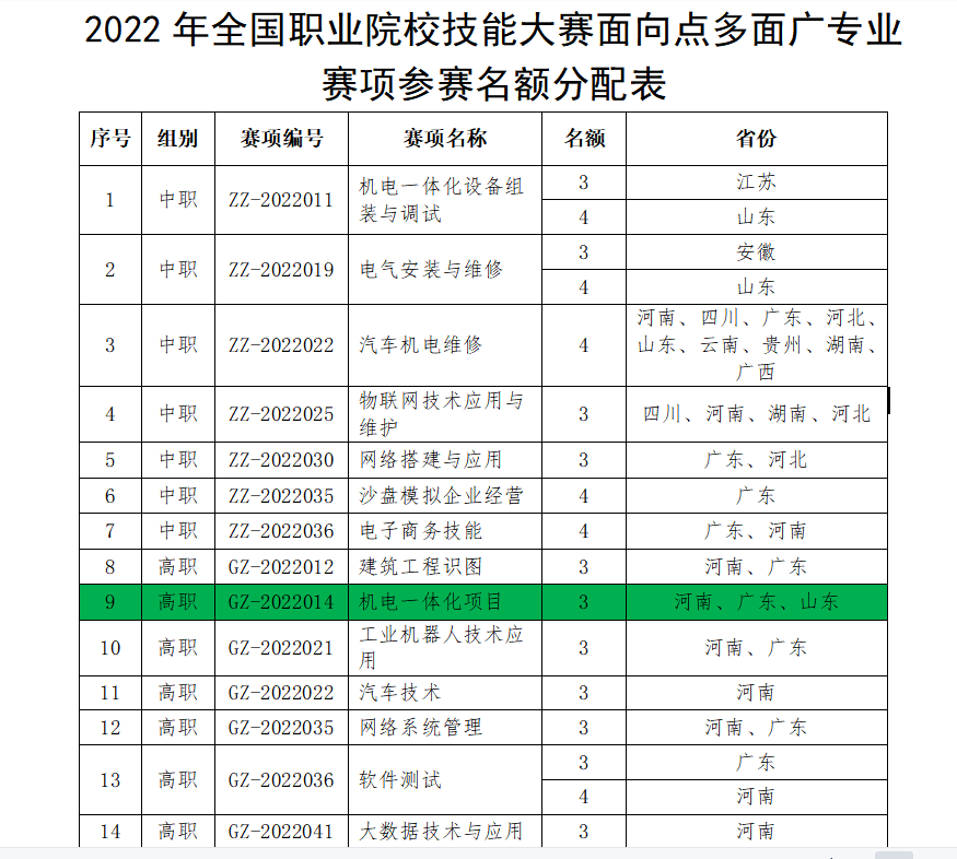 根据全国职业院校技能大赛执委会《关于2022年国赛报名工作的通知》的相关要求,按照我院在机电一体化项目省级技能选拔赛中取得的成绩,经与河南省教育厅确认,我院机电一体化项目技能竞赛项目成功入围国赛。