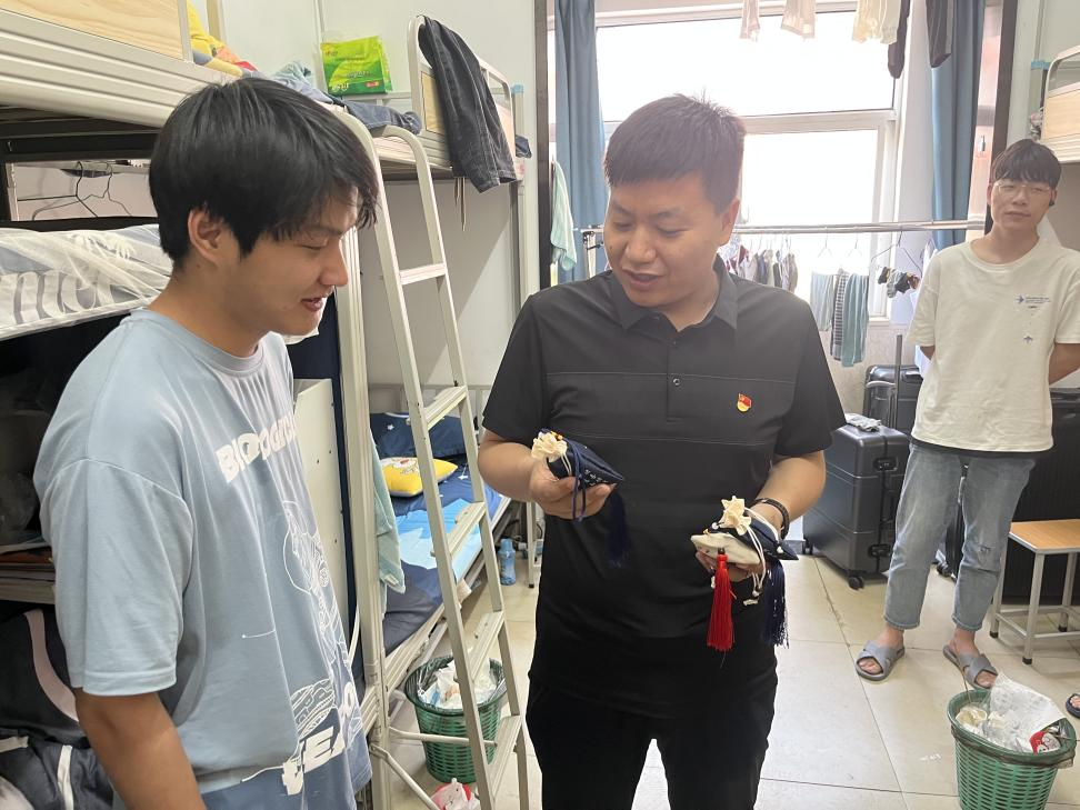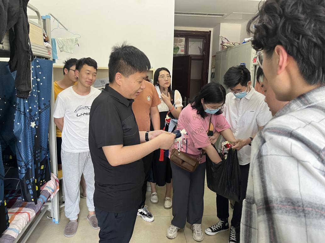 在走访慰问中,院长张春伟及辅导员等一行人对同学们勤奋求知与不断攀登的精神给予赞赏,就近期同学们学习,生活情况进行亲切交谈。为备考学子们准备了端午香包、金榜题名手链、励志卡片、风油精、清凉油等礼品,并嘱咐同学们要坚定目标,以必胜的信心走上考场,全力拼搏,不留遗憾。与学生交谈过程中,老师们也建议同学们合理分配时间,劳逸结合,保持良好心态,为专升本考试做好充分的准备。在全身心备考的同时,注意做好个人防护,严格遵守疫情防控期间的相关规定。最后祝大家学业有成,成功上岸!