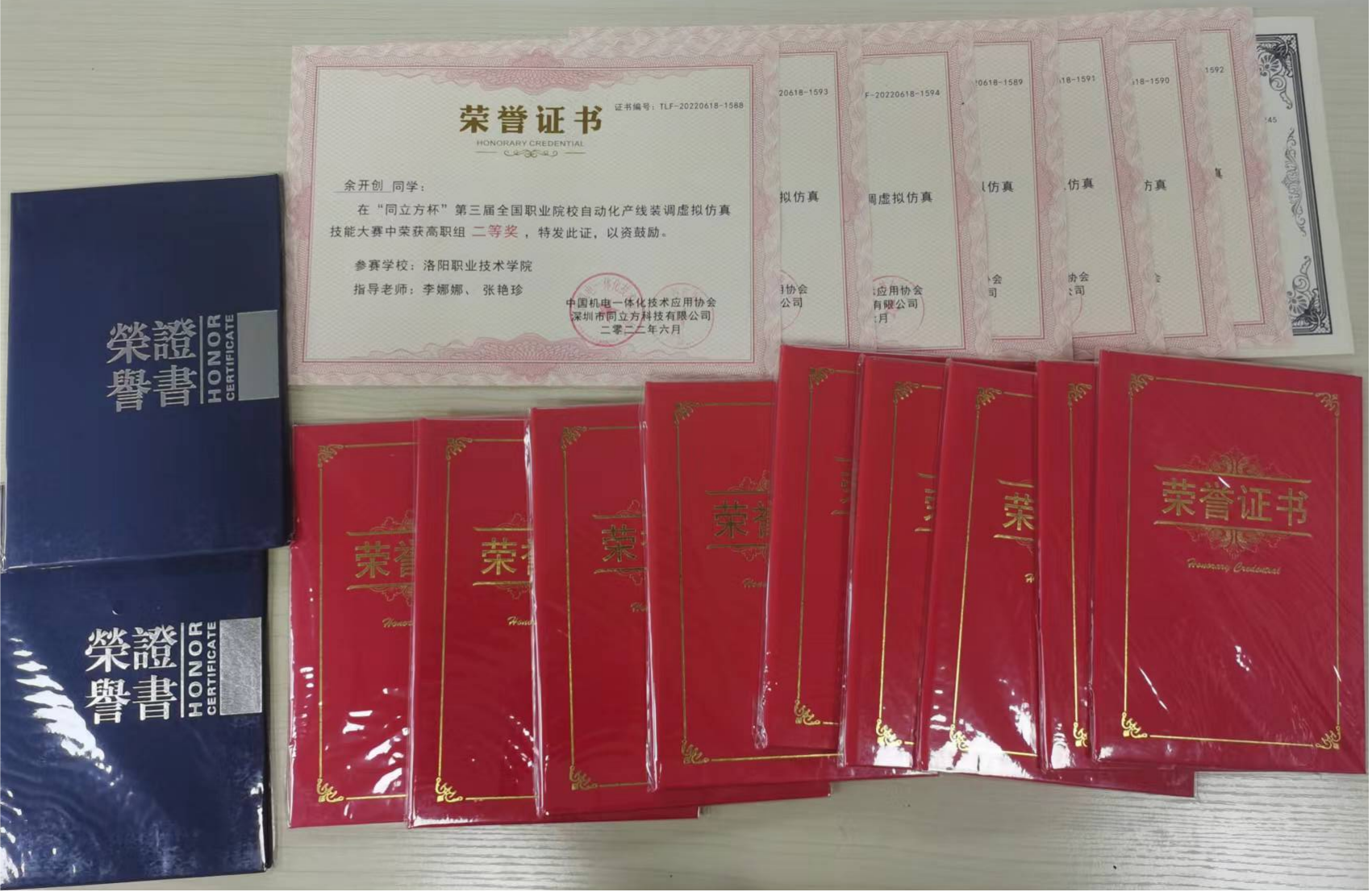 近日机电工程学院机电一体化技术教研室组织学生通过线上参赛的方式,参加“同立方杯”第三届全国职业院校自动化产线装调虚拟仿真技能大赛,取得了优异成绩,分别获得了二等奖三项,三等奖四项,优秀奖两项。其中19机电303班刘广、20电梯301班袁玉柯、21电梯301班余开创分别获得了二等奖,21机电303班梁昊天、21机电305班杨孟博、21电梯301班赵金旭和21机器人302班刘紫阳分别获得了三等奖,21机电305班屠乐骏和19五年制机电502班陈炳坤分别获得了优秀奖。
