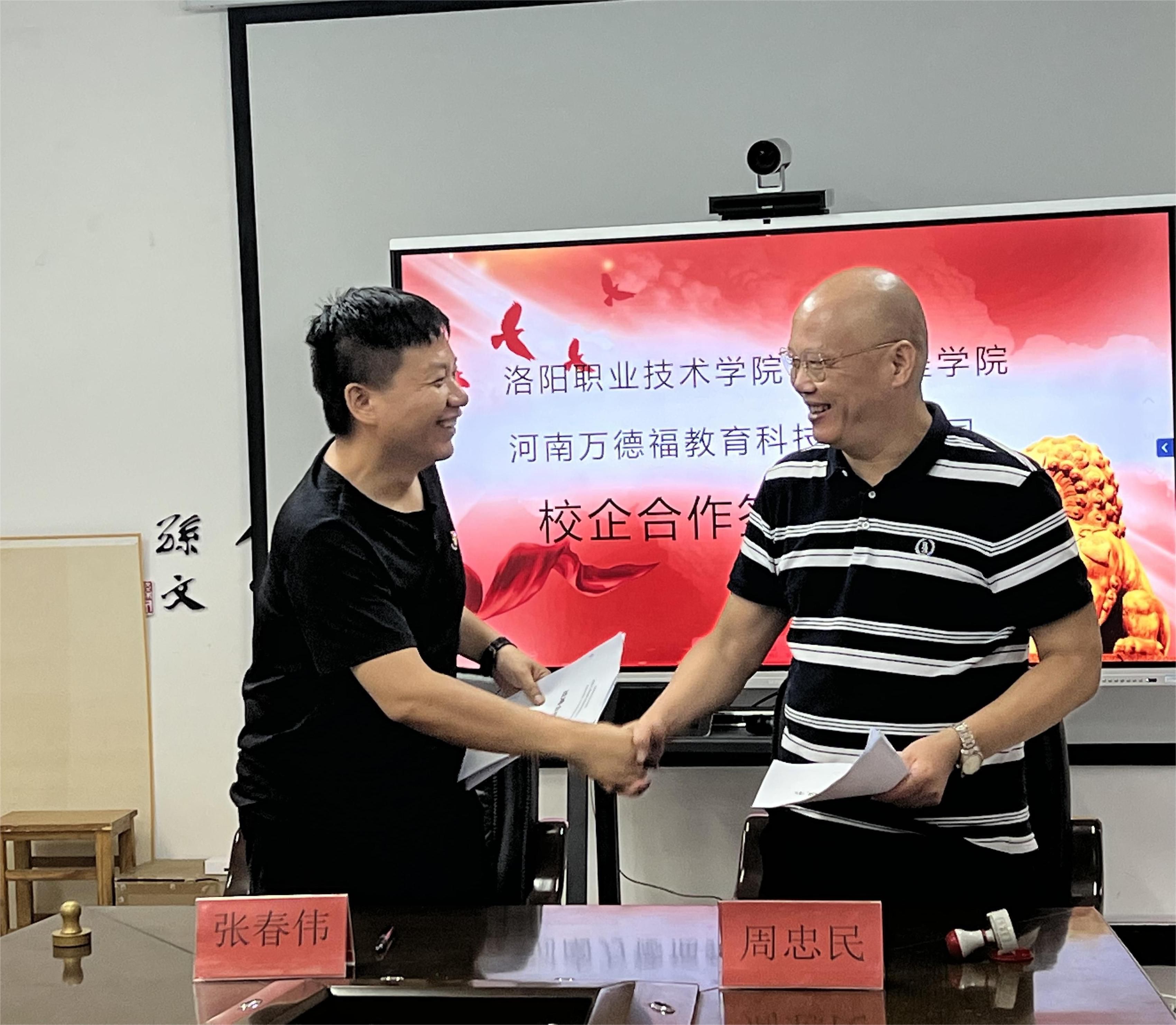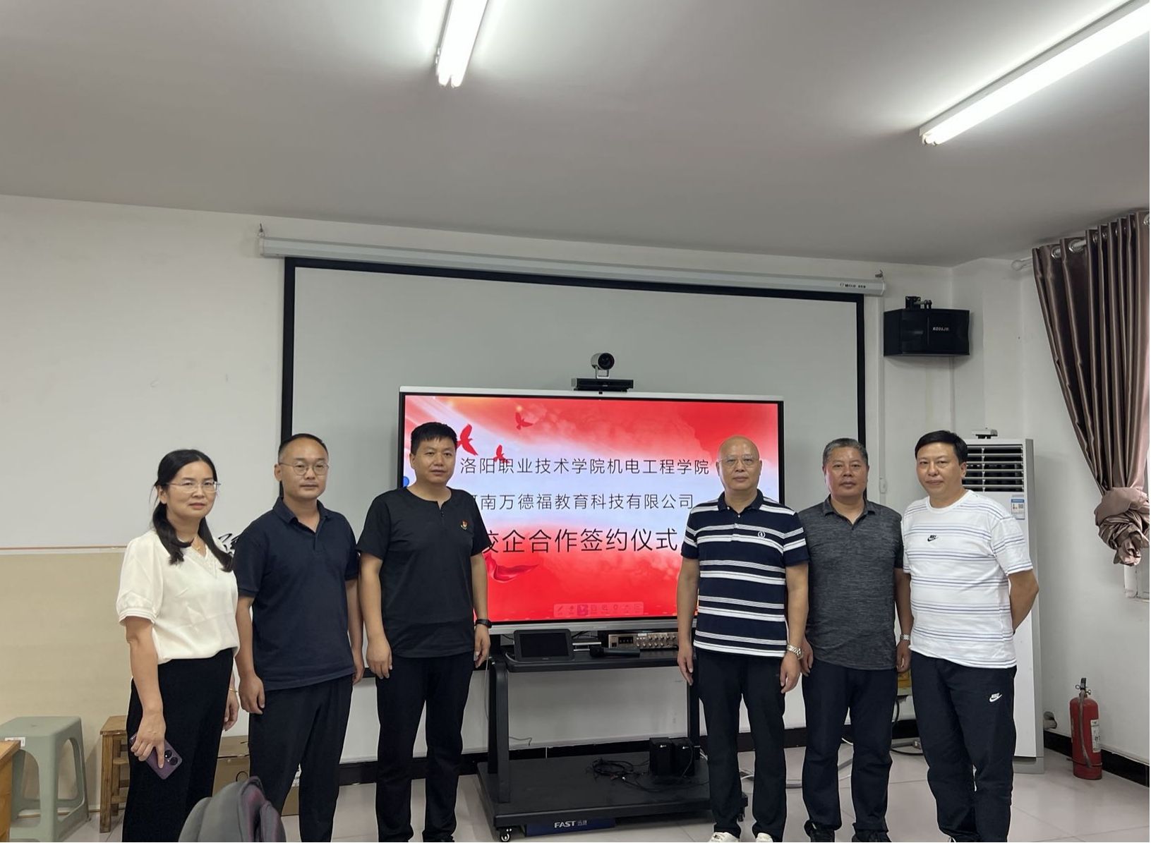 河南万德福教育科技有限公司在智慧校园、校园信息化项目方面有渠道和服务方面的独特优势,在专业建设、课程体系建设、师资培训等方面实力较强,根据协议,校企双方将利用各自优势资源,共同开展机电及无人机技术专业技能培训工作,共建实训基地,探索以市场需求为驱动,以职业能力培养为核心的校企合作新模式。