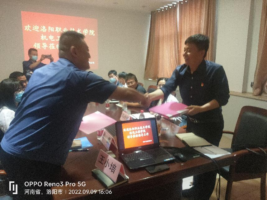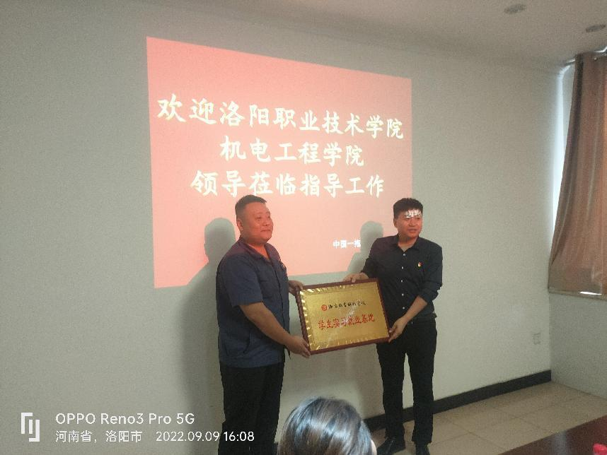 9月9日,洛阳职业技术学院机电工程学院与中国一拖齿轮转动有限公司举行“实习就业基地”签约授牌仪式,建立实习就业合作关系。