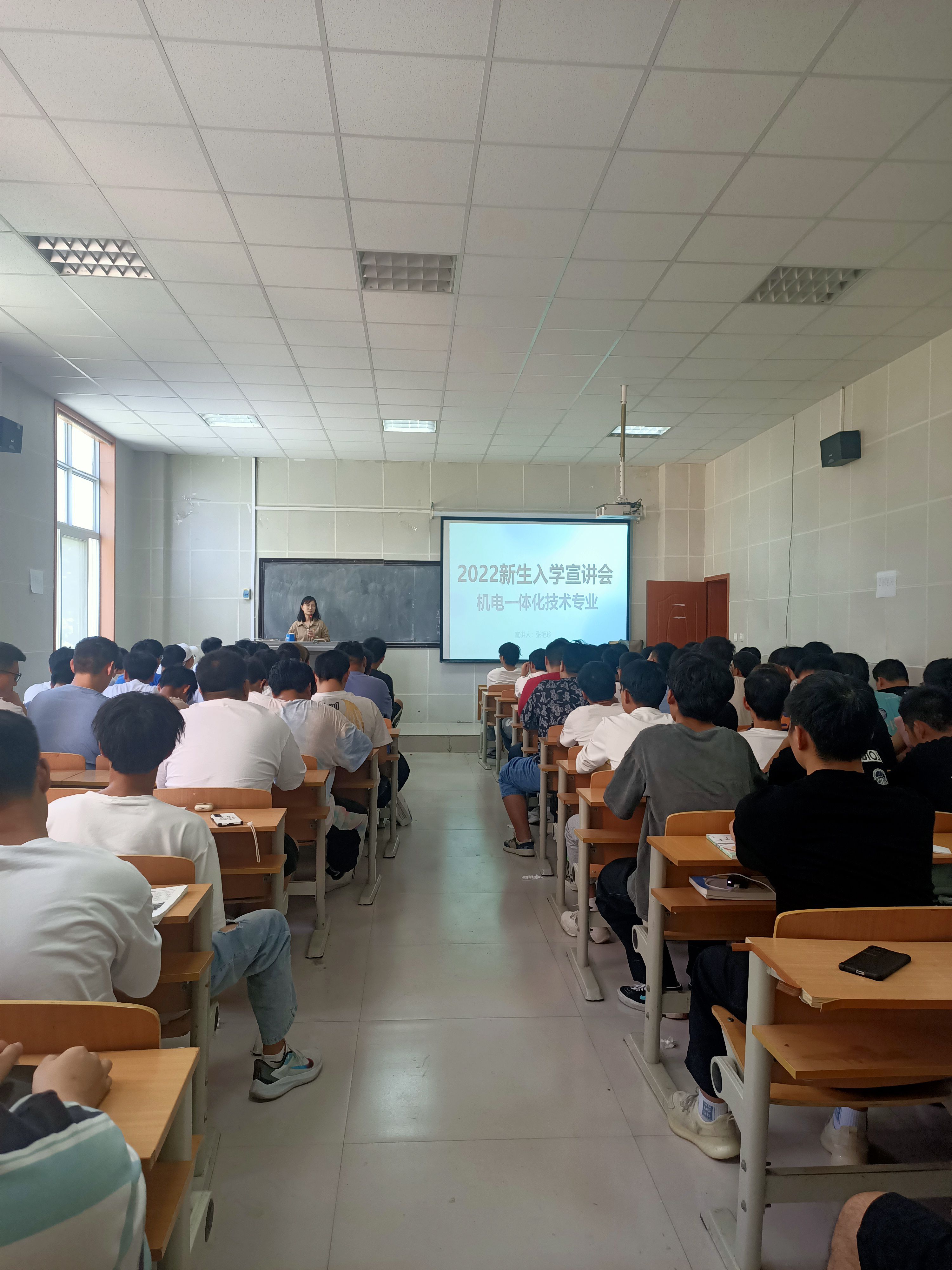紧接着,机电教研室主任张艳珍向2022级新生介绍了机电一体化技术专业特色、专业发展趋势、就业前景,并对专业培养模式、培养目标、课程设置、设备设施、师资力量等方面为同学们进行了全面的介绍。骨干教师李雪林、吴丽分别从课程学习模式、学生学习方法等方面展开入学教育。
