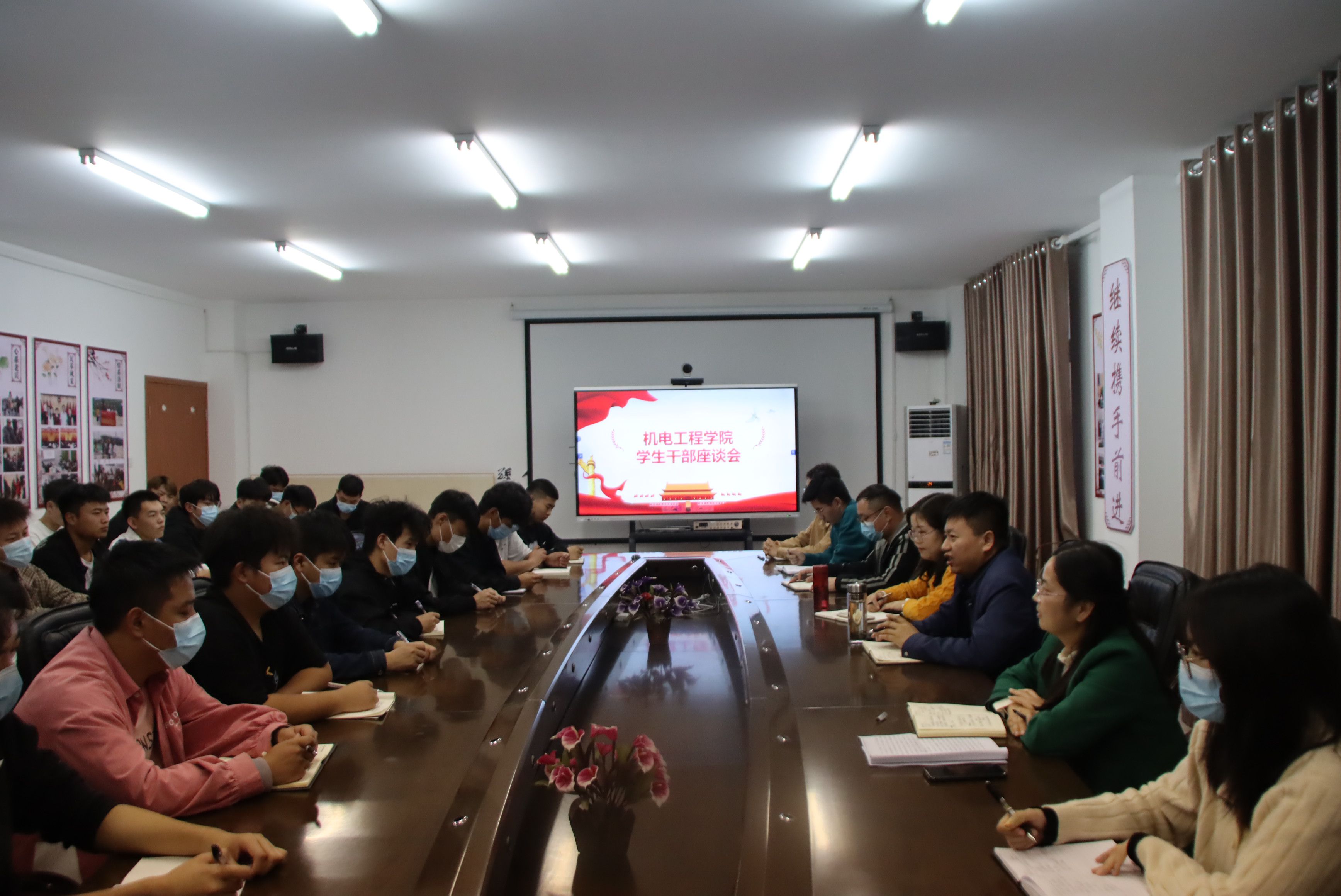 为做好学生干部的培养工作,充分发挥学生干部在学生中的主力军作用。10月19日下午,机电工程学院在综合楼会议室召开了学生干部座谈会。本次座谈会由机电工程学院院长张春伟主持,党总支副书记马玲娟、学工办主任段檀烁、专兼职辅导员以及30余名学生干部参加。