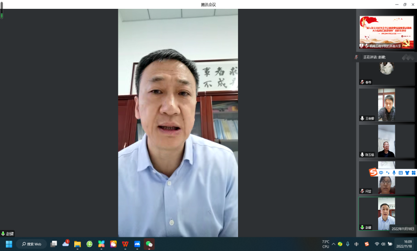 11月18日下午,赵健校长深入机电工程学院参加教工党支部“深入学习习近平总书记视察安阳重要讲话精神,大力弘扬红旗渠精神”专题组织生活会,教工支部全体党员分别在线上线下参加会议,会议由机电工程学院党总支副书记马玲娟主持。