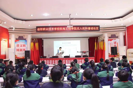为丰富我院学生的课余文化生活,陶冶学生的情操,发展同学们的个性特长,营造独具特色的校园文化活动氛围,同时为培养少年儿童对科技文化的兴趣,培养孩子们的逻辑思维、沟通协作等综合能力。3月17日下午,我院组织无人机应用技术专业学生,前往洛阳第五十一中学小学部,组织开展了“将科技带入校园”无人机科普社团活动。
