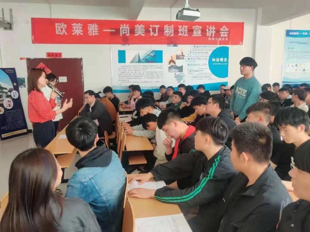 为全力拓宽我院毕业生就业渠道,为他们搭建就业平台,提供暖心服务,全力促进我院毕业生顺利就业、尽早就业,2023年4月24日下午,机电工程学院在高新区新教学楼举办欧莱雅—尚美订制班宣讲会。