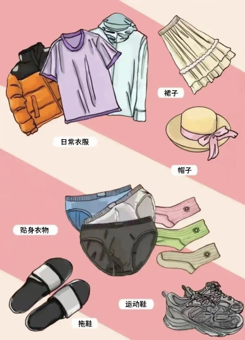 天气变化无常,大家可以携带少部分夏季衣服和轻薄秋装。(如果计划国庆期间不回家的话,需要提前准备好秋冬季节的衣服和鞋)