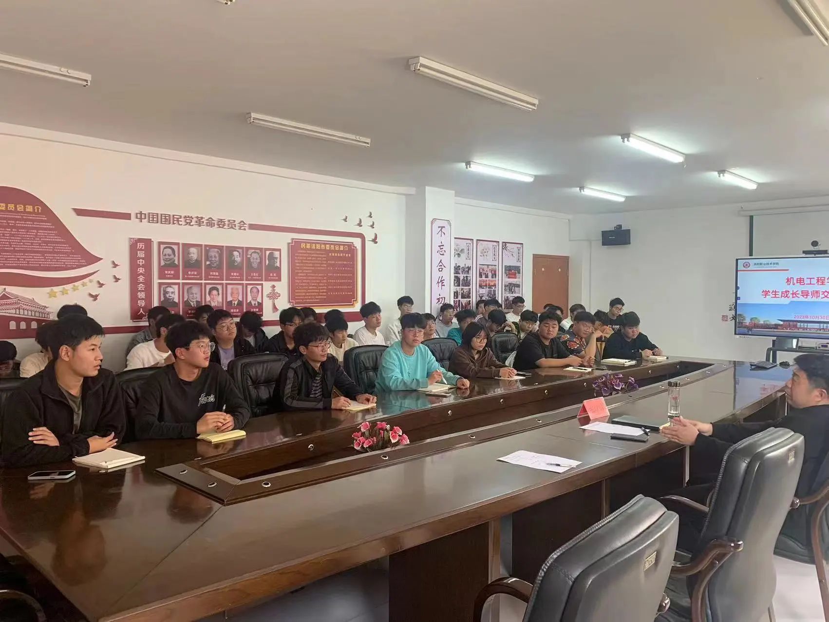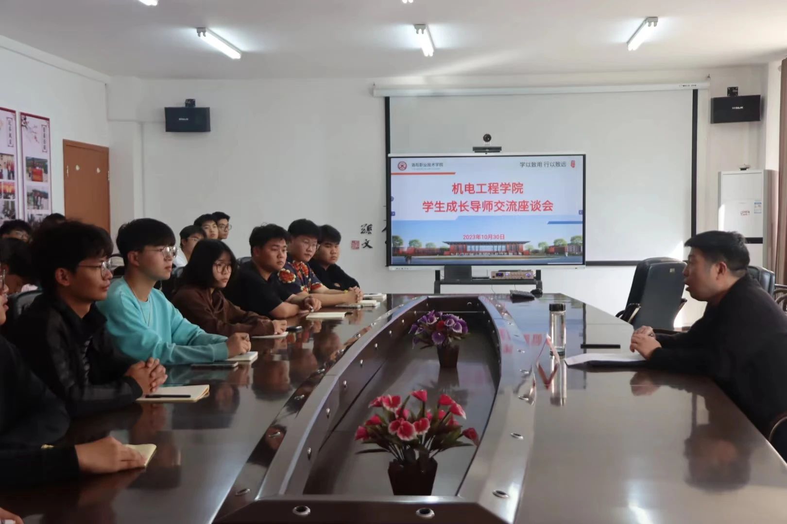 为及时掌握我院学生思想动态,了解学生需求,解决学生实际问题,进一步提高大学生思想政治教育工作的针对性、实效性和科学性,为我院学生学习成长精准赋能,我院于10月30日下午在综合楼三楼会议室召开学生成长导师交流座谈会。会议由机电工程学院党总支书记张现强、辅导员房会会及23电梯301班学生参加。