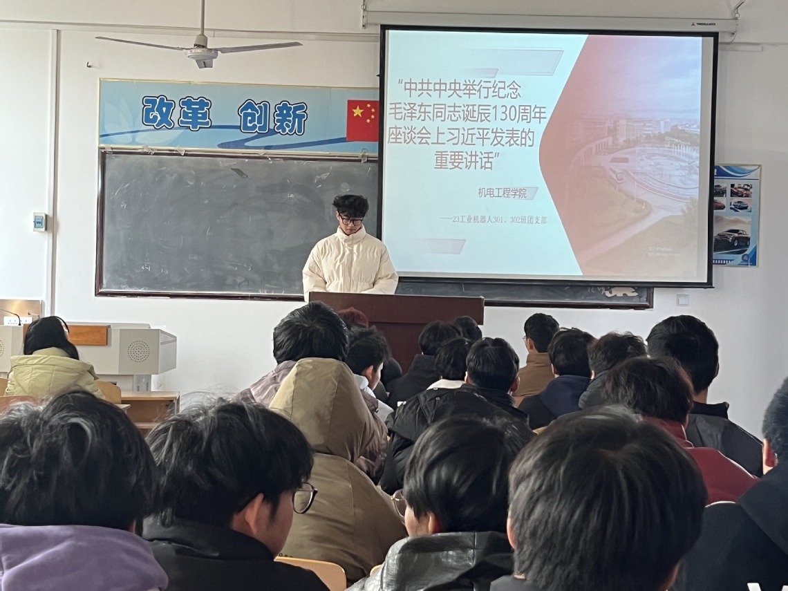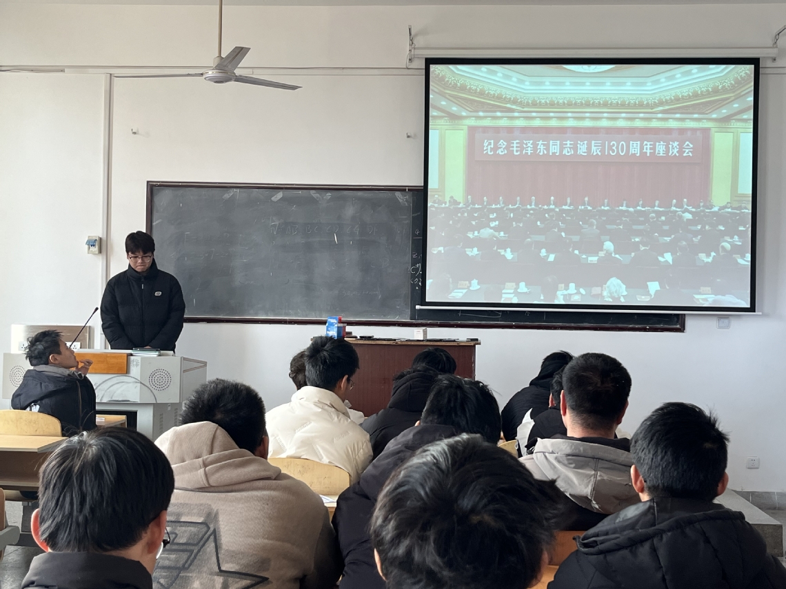 为纪念毛泽东同志诞辰一百三十周年,学习贯彻习近平总书记重要讲话精神,12月28日下午,机电工程学院开展学习习近平总书记在纪念毛泽东同志诞辰130周年座谈会的讲话精神主题教育活动。