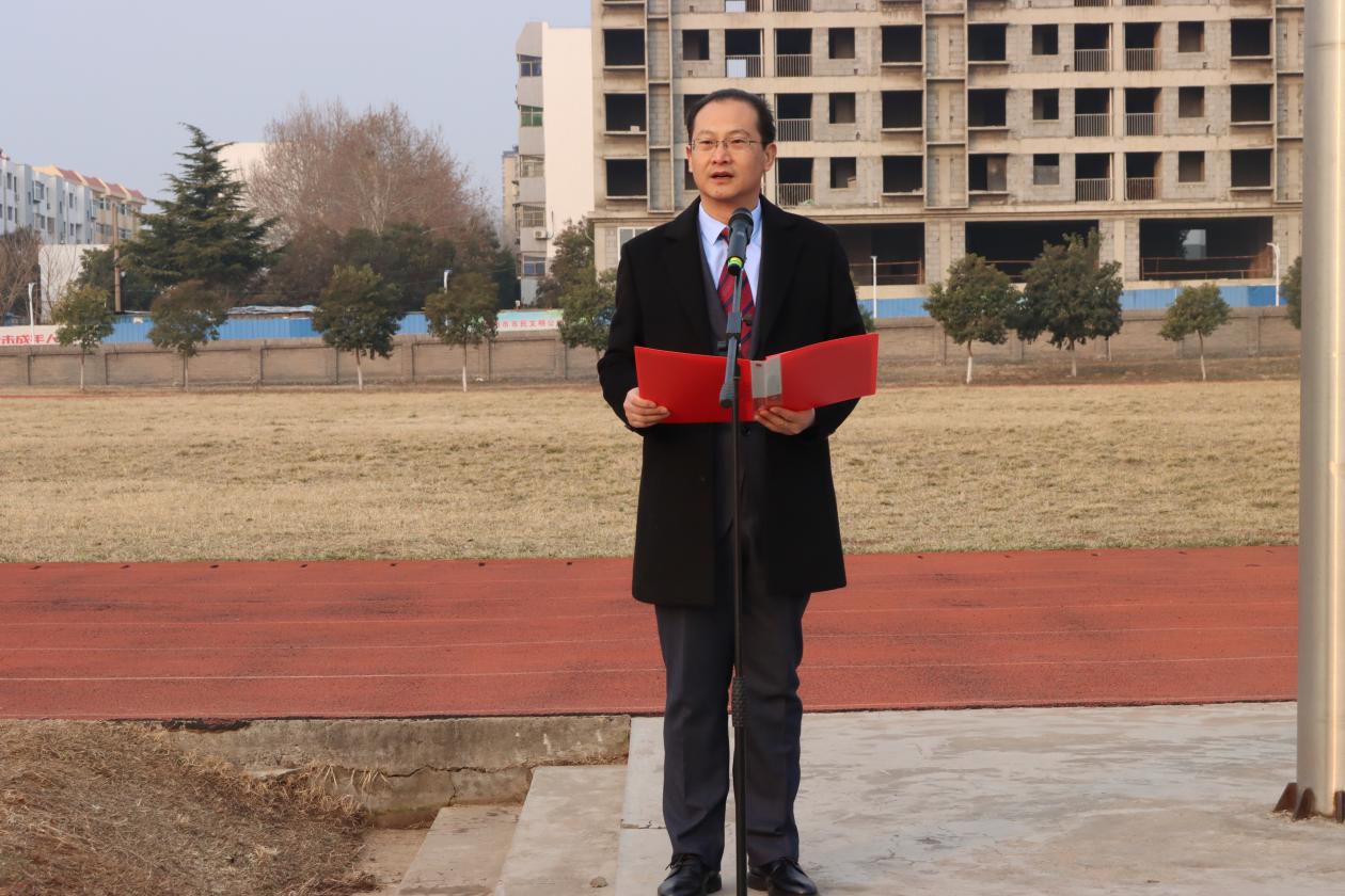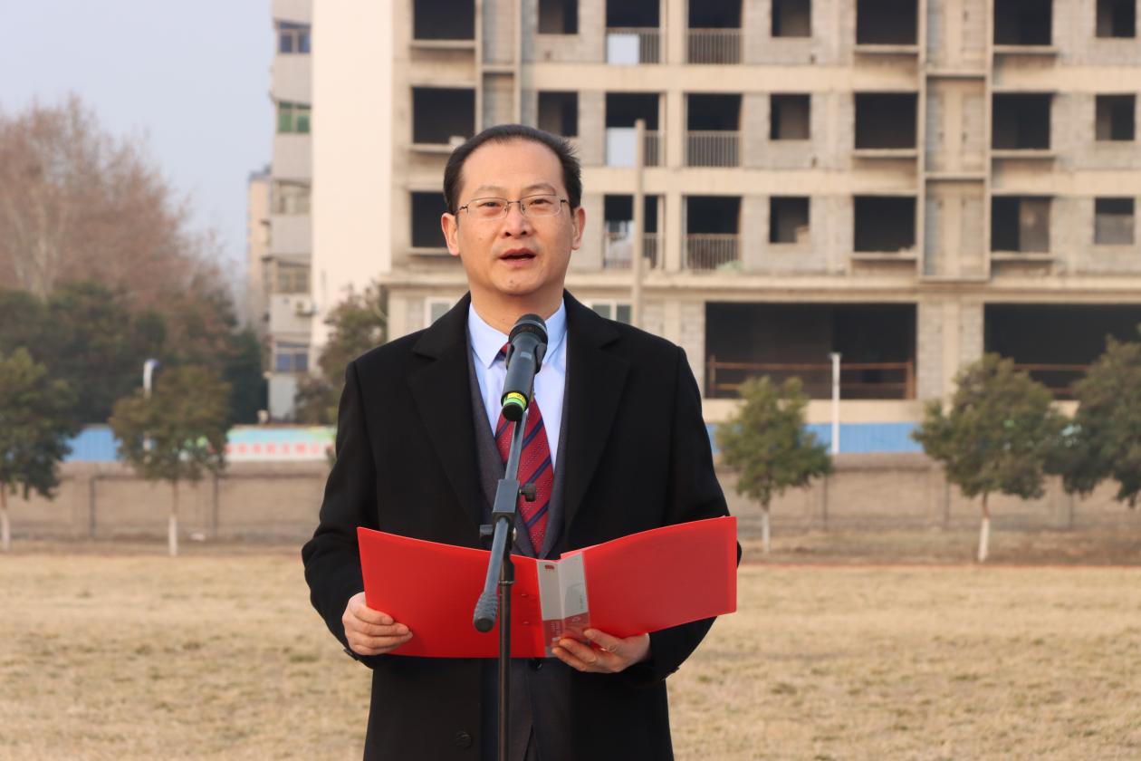 2月28日,洛阳职业技术学院党委委员、副校长李保安来到高新校区,与全体师生一起参加了升旗仪式并进行教育教学工作指导。升旗仪式由机电工程学院院长张春伟主持,高新校区全体师生参加。