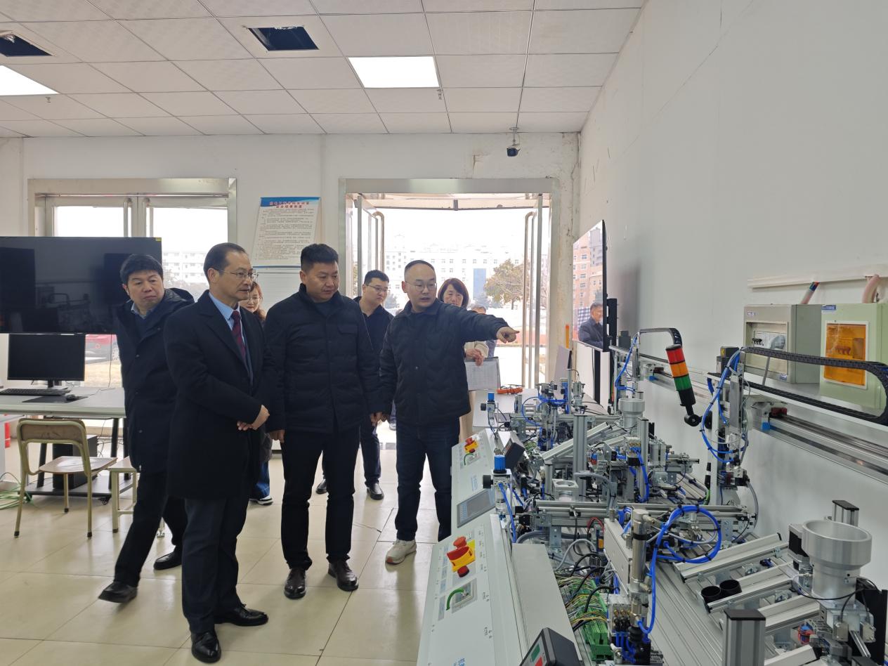 随后,李保安视察了机电工程学院实训室。在课堂教学区,观摩了学生在专业教师的指导下进行实际操作和项目实战的场景。
