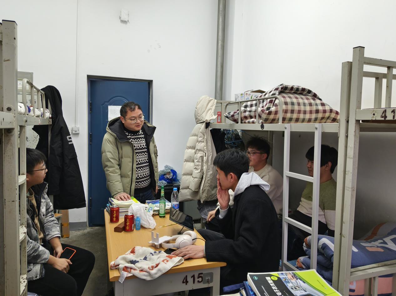新学期开学伊始,为了解我院学生到校状况,督促学生在新学期中保持良好的学习生活习惯,2月27日,机电工程学院党总支书记张现强、副书记段檀烁以及全体专兼职辅导员深入走访学生宿舍,为同学们送去关心与问候。