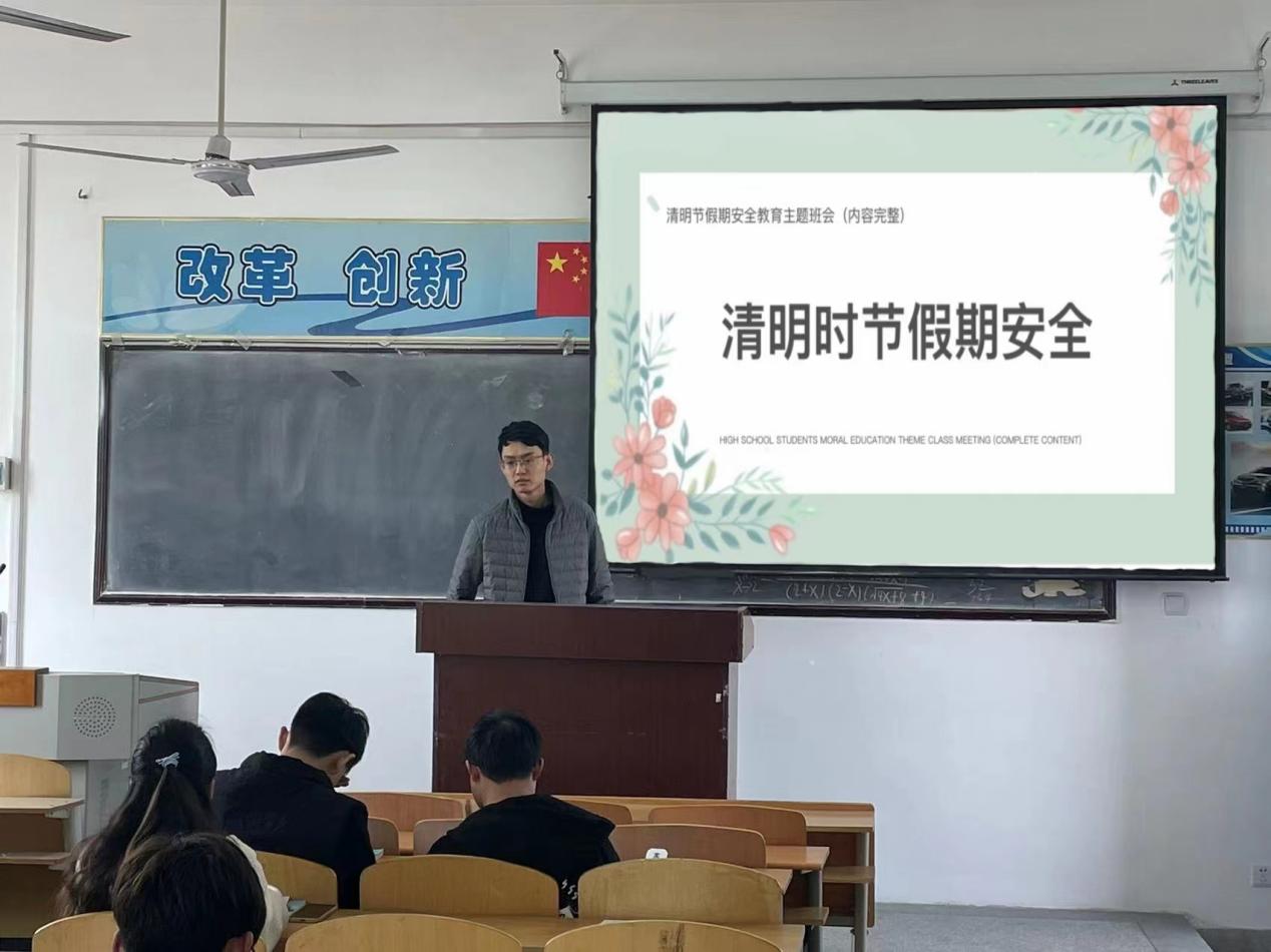全体专兼职辅导员组织所带班级开展清明假期安全教育主题班会。紧紧围绕防溺水、防诈骗、生命安全、财产安全、消防安全、交通安全等方面展开宣传教育。通过真实典型案例的讲解与探讨,同学们深刻认识到了安全事故的严重性和预防的重要性,旨在增强大家的安全意识,确保假期期间的人身安全。