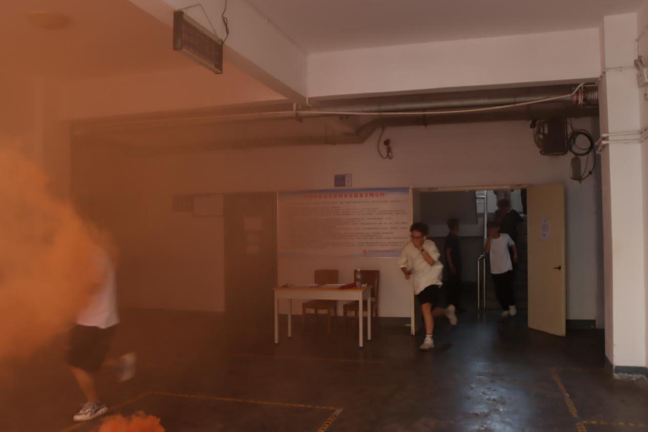 伴随着警报声的骤然响起,同学们在老师的指导和带领下,迅速作出反应,按照预先演练的逃生路线,井然有序地弯腰、躬身、捂住口鼻,以防吸入有毒烟雾。同学们沉着冷静,不惊慌、不推搡,快速通过安全通道并到达指定的安全区域。