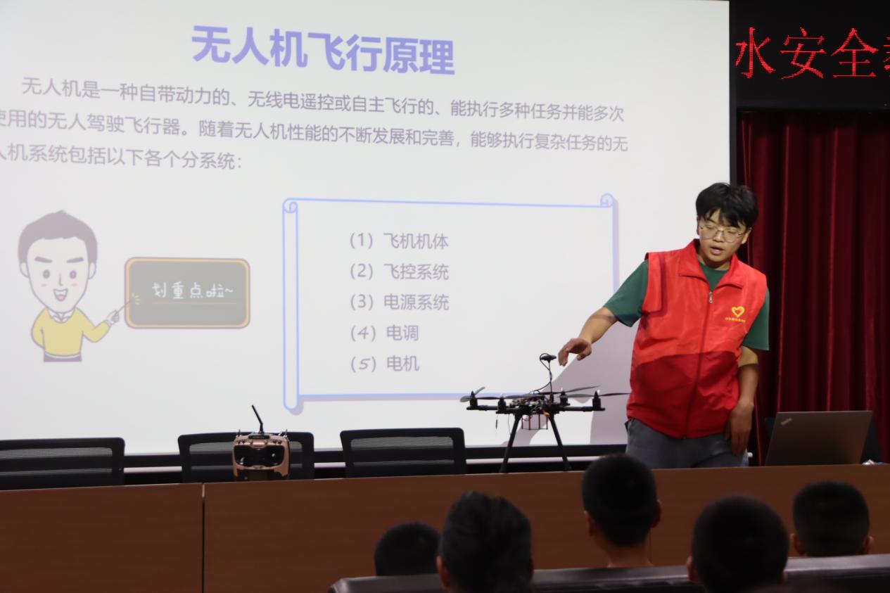 活动伊始,小齿轮先锋队队员张燕诚从“无人机的起源与发展史、类型以及其特点、现代科技融合与技术发展”等方面,为小朋友们进行了详细的讲解。他与台下的小朋友积极互动,让孩子们结合自己的奇思妙想,想象出自己心中的无人机模样,并上台展示真实的无人机。