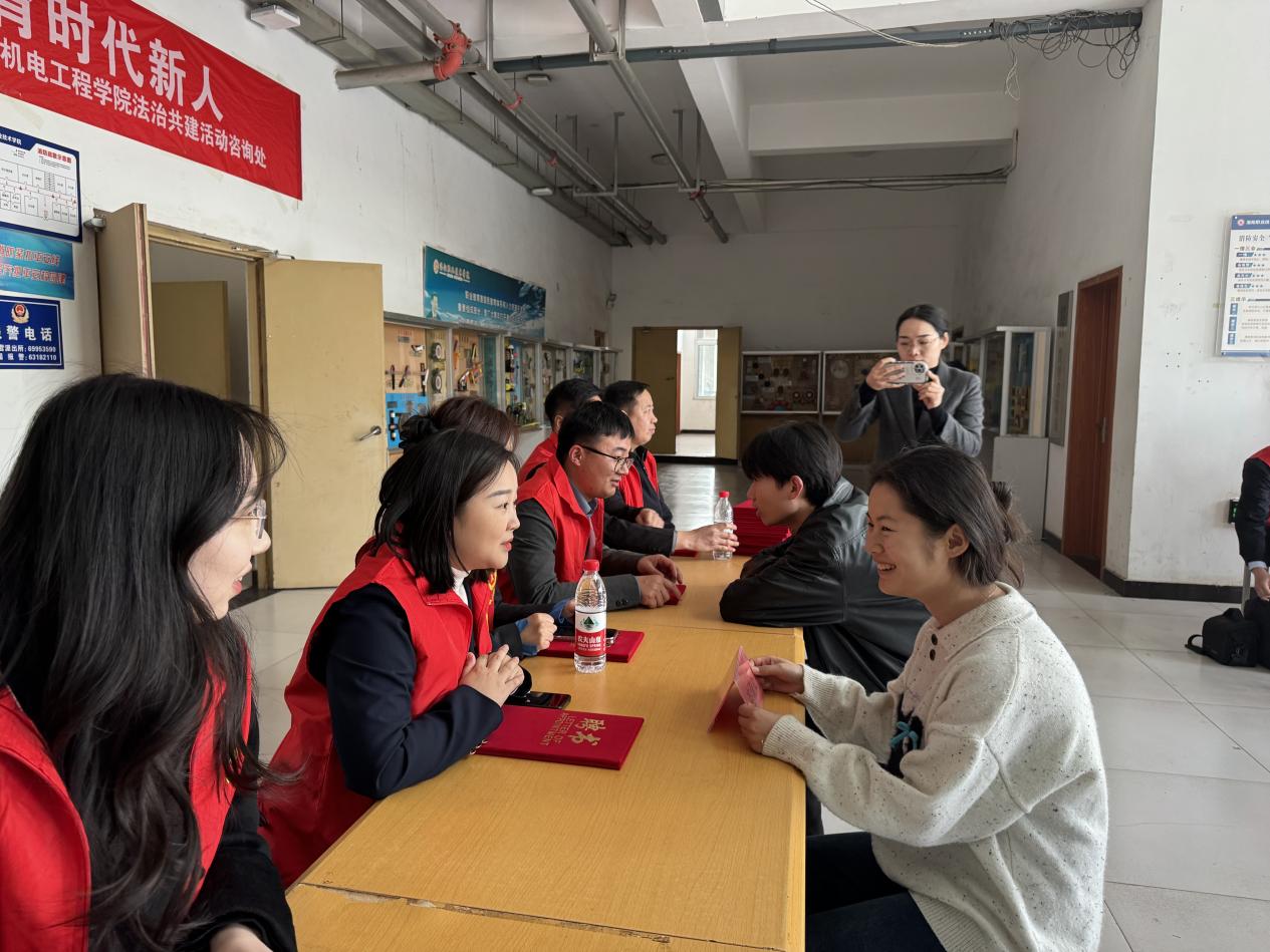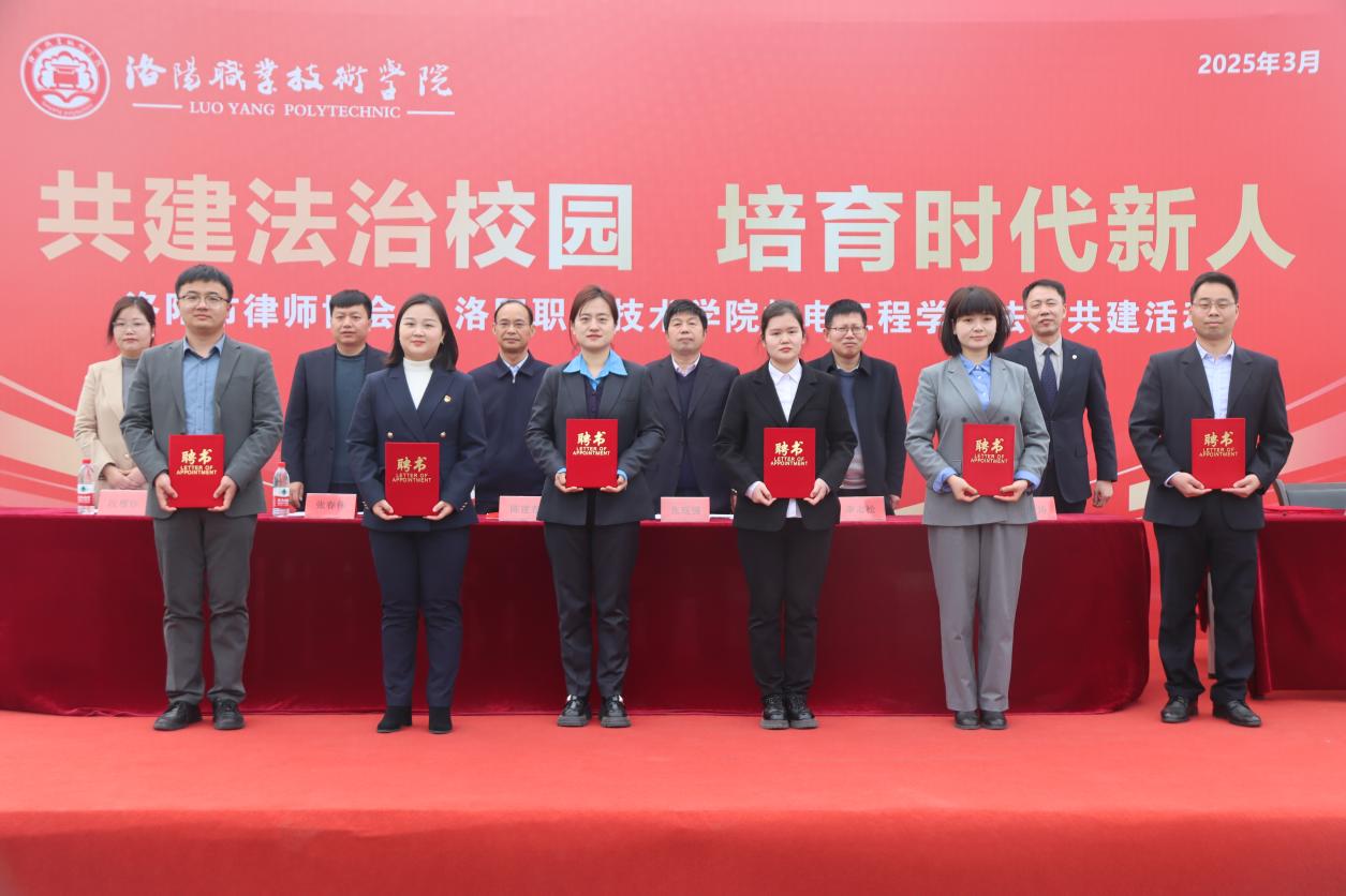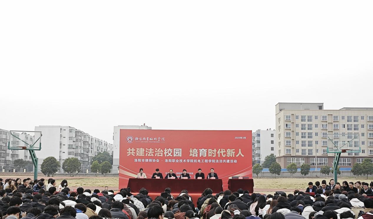 3月13日,洛阳市律师协会与洛职机电工程学院在高新校区操场隆重举行法治共建活动。市司法局党组成员、二级调研员、市律师行业党委书记陈建春,洛职机电工程学院党总支书记张现强、院长张春伟,市司法局律师工作科科长、市律师行业党委副书记李志松,市律师协会会长杨新涛、20余名行业资深律师及机电工程学院全体师生参加。活动由机电工程学院党总支副书记段檀烁主持。