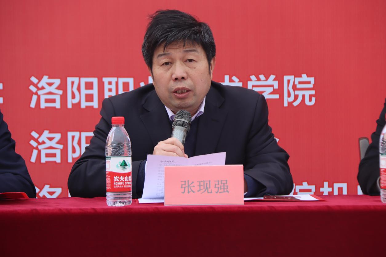 张现强致欢迎辞,他回顾了我院长期以来法治教育取得的成果,并表达了对洛阳市律师协会长期以来对学院法治建设支持的感谢。随后,陈建春发表了讲话,他高度评价了此次共建活动的意义,并表示市司法局将继续加大对校园法治建设的支持力度。